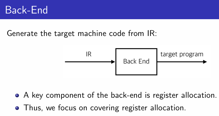 - IR 변환 과정에서는 수많은 임시 변수가 생성되는데, 실제 하드웨어는 제한된 레지스터 수량만 사용 가능