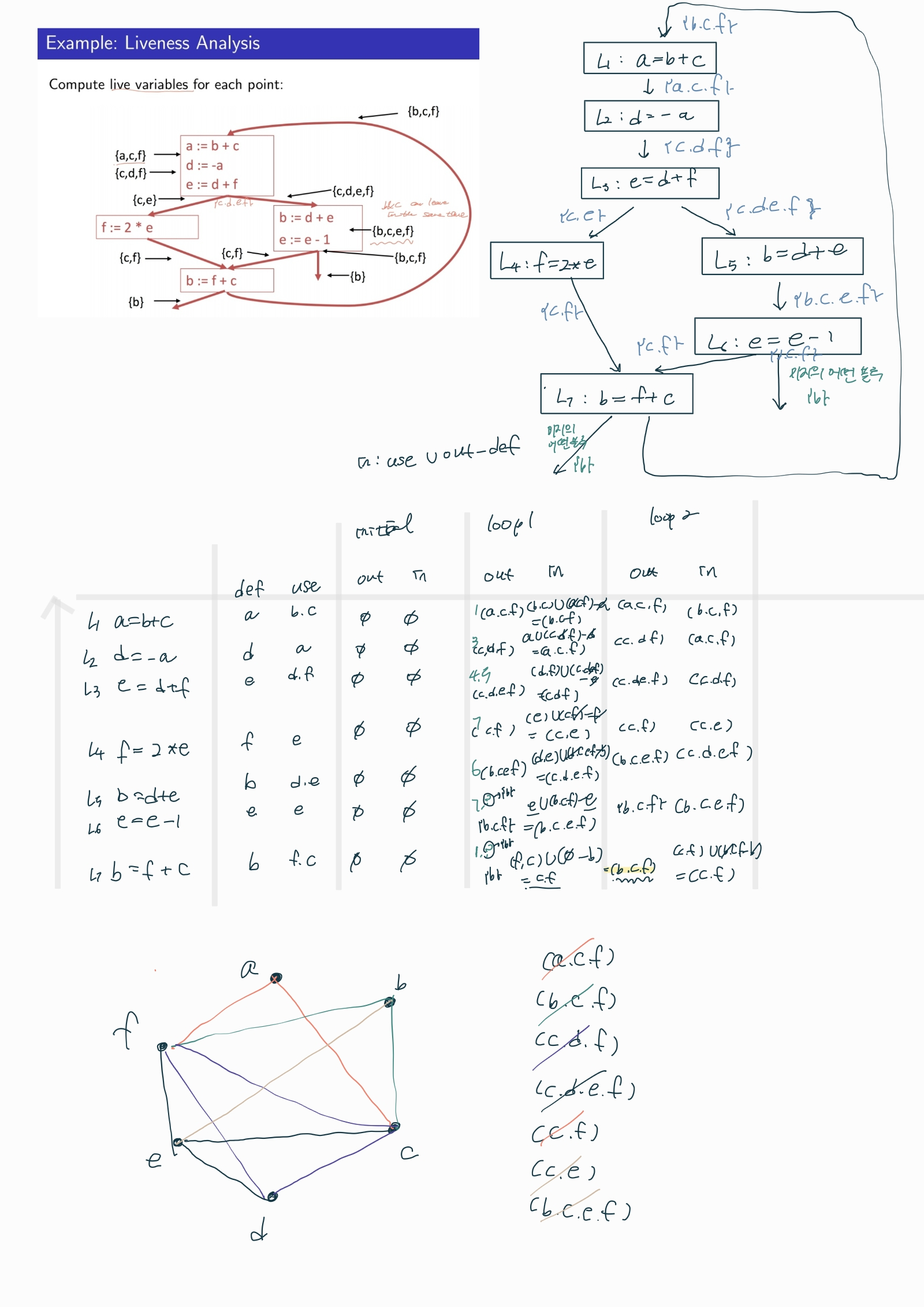 그래서 {b}를 live 변수로 고려하면서 LA를 했을 때 얼추 슬라이드와 비슷한 정답을 얻어낼 수 있었음..