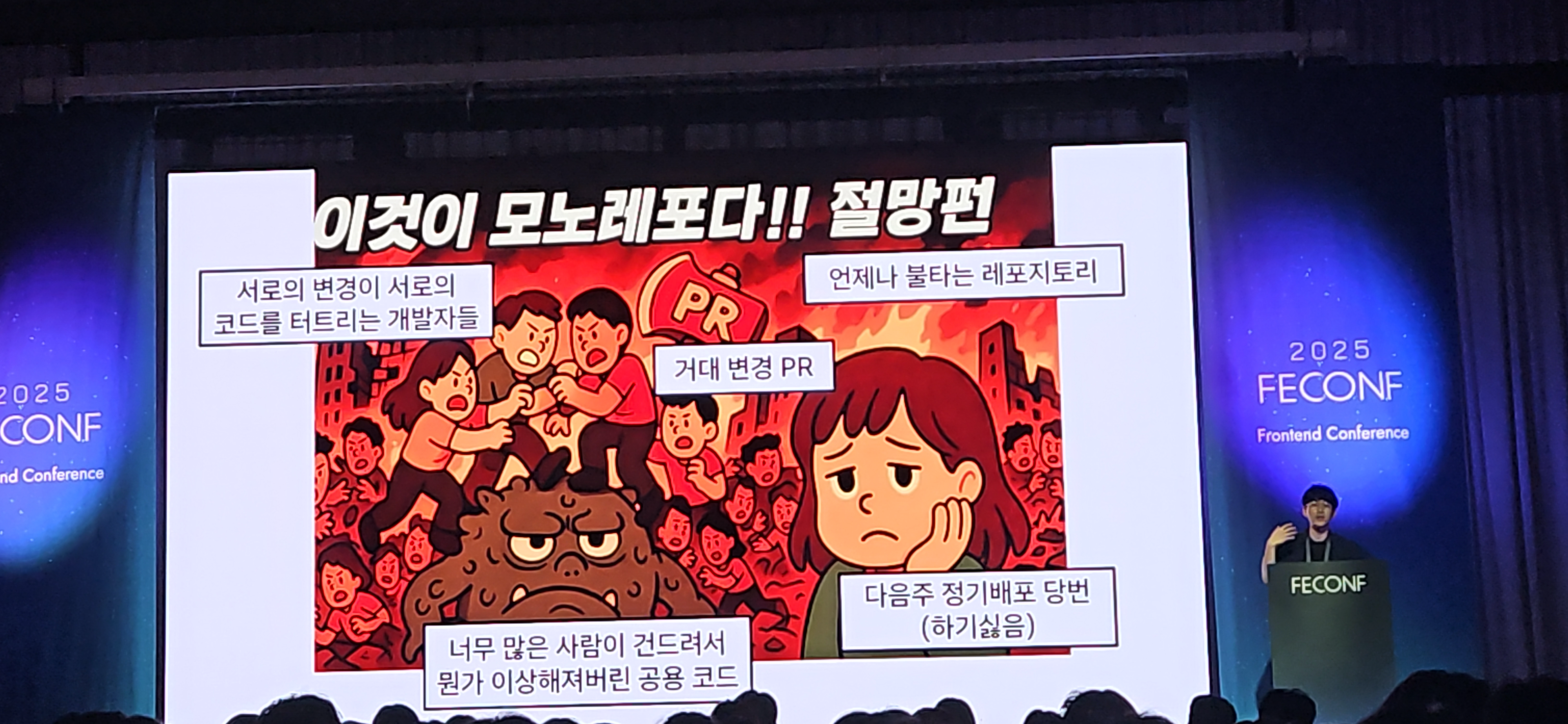 FEConf 2025에서 제가 발표했었던 "모노레포 절망편, 14개의 레포로 부활하기까지 걸린 1년" 세션의