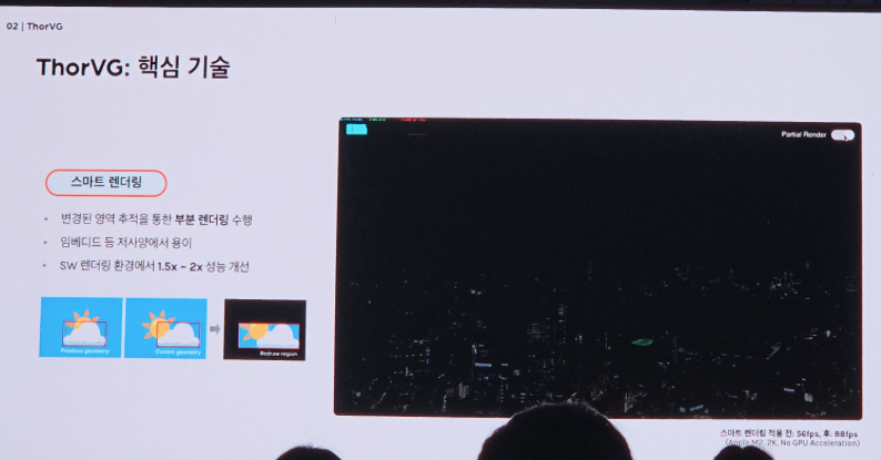 - apple m2, 2k 해상도, gpu 가속 없음 환경에서 테스트했을 때 스마트 렌더링 적용한 경우 56fps->88fps로 개선됨