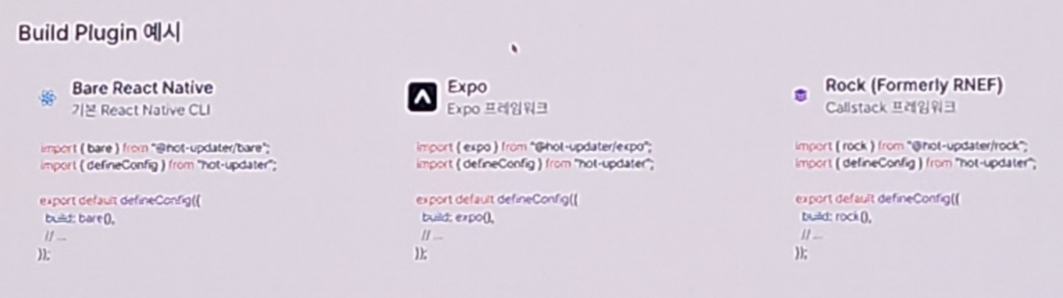 - Expo, Re.Pack 등 다양한 RN 프레임워크 환경의 유연한 적용이 어려움