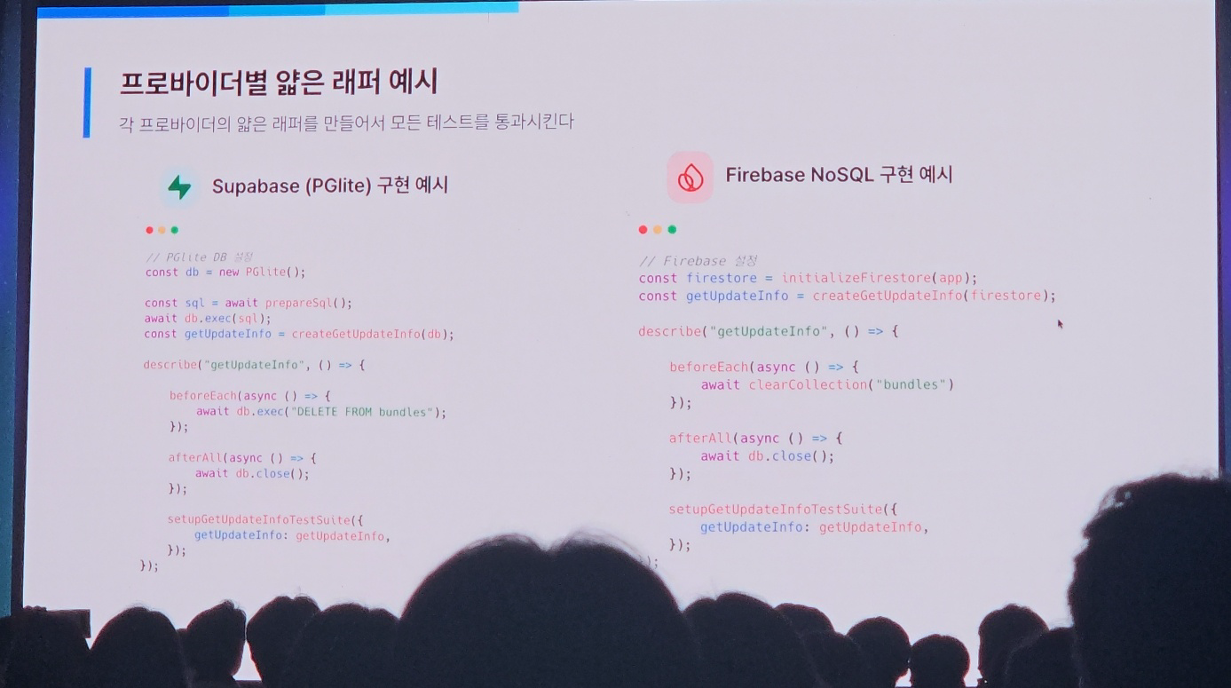 - 프로바이더마다 얇은 래퍼 코드를 제공 -> 테스트 동일하게 적용 가능