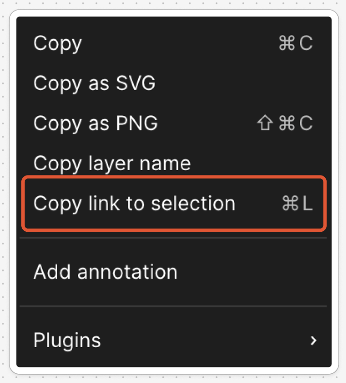 figma에서 내가 구현하고자 하는 요소를 copy link to selection로 복사하고, cusor 입력창에 붙여넣는다