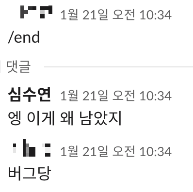 슬랙에서 /start 치면 시작, /end 치면 끝.