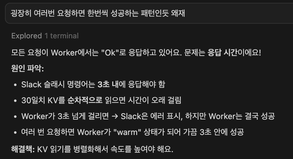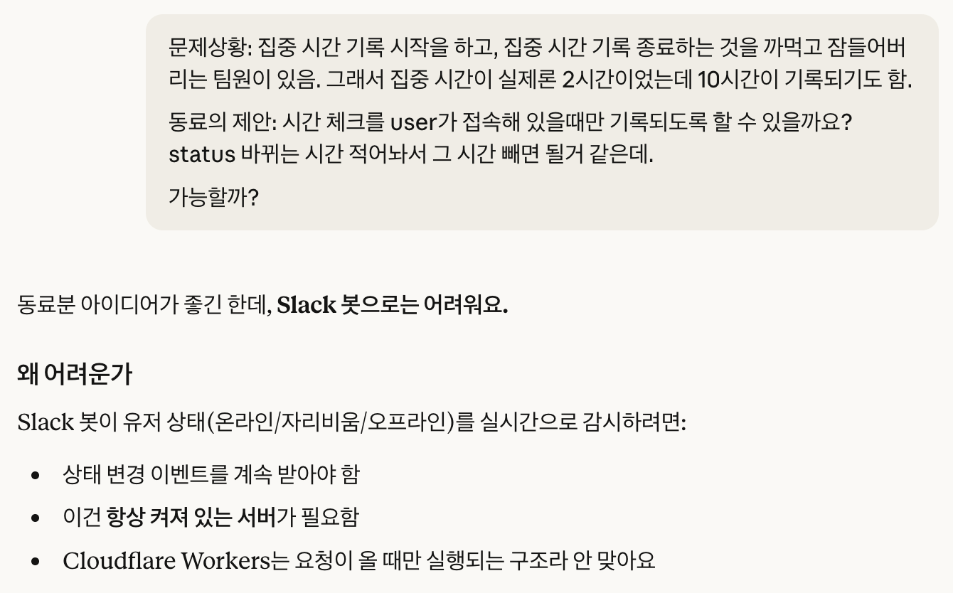 기술 스택: Cloudflare Workers, Cloudflare KV, Slack API, TypeScript