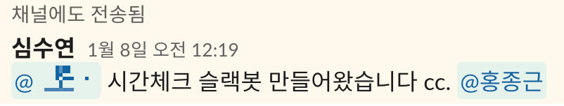 2장: 시간체크 슬랙봇 만들어왔습니다 (1월 8일)