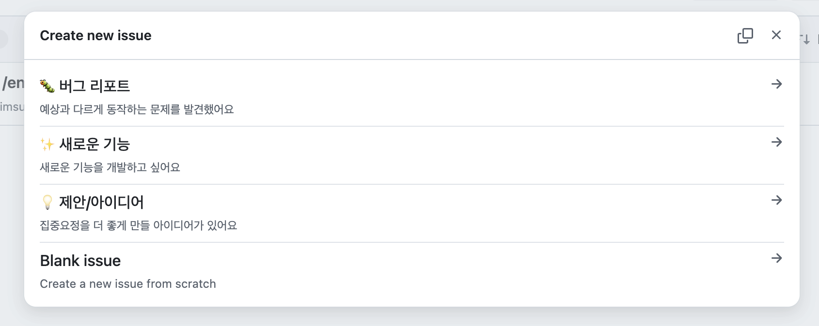 이슈 템플릿과 pr 템플릿도 만들었다.