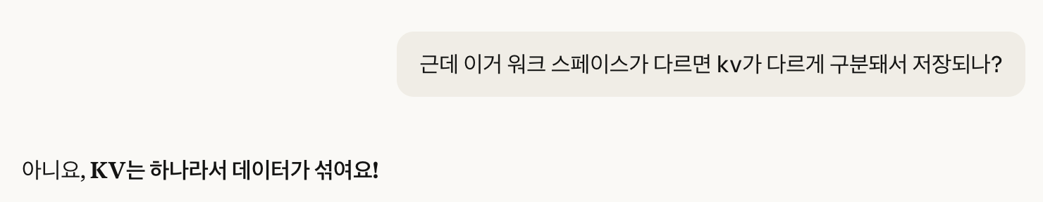 각 워크스페이스별 ID를 KV 데이터에 포함시켜야 한다는 것도 초기에 캐치할 수 있었다.