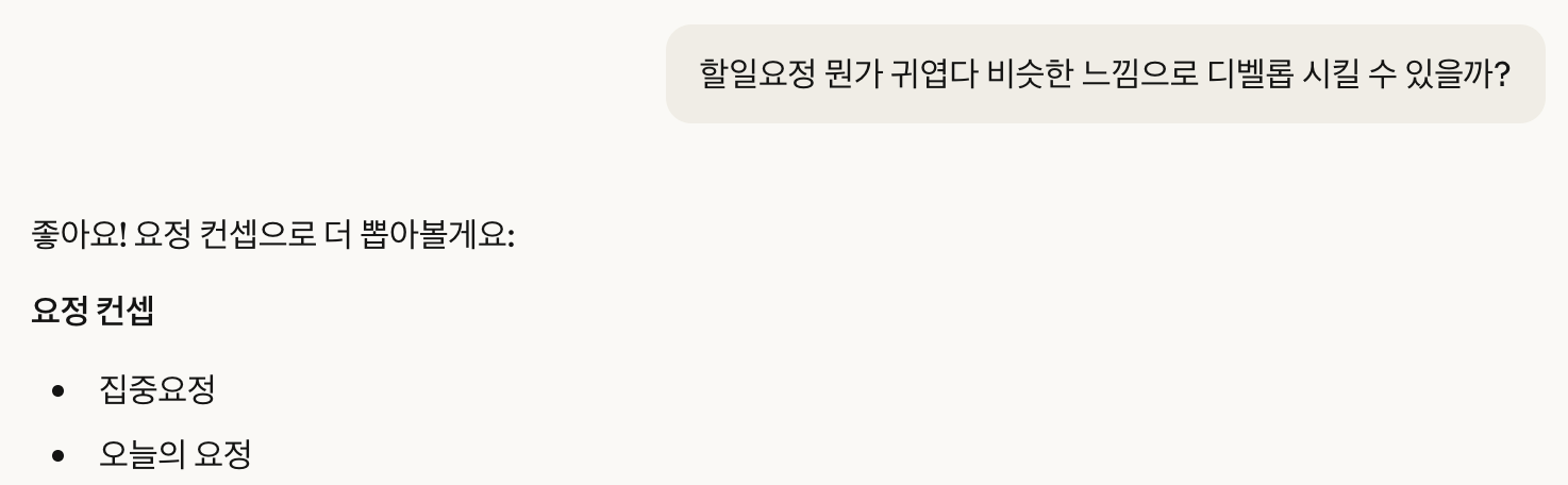 Claude와 아이디어를 주고 받다가 "요정"이라는 컨셉을 도출해냈다.