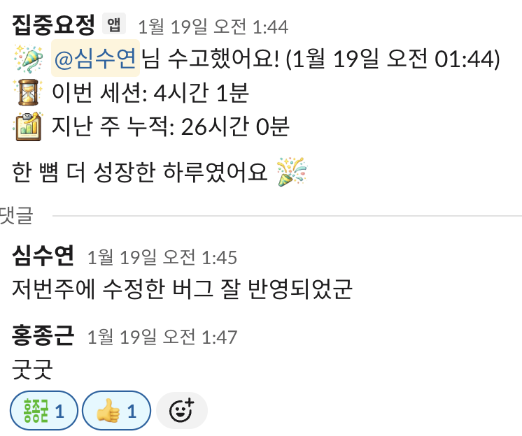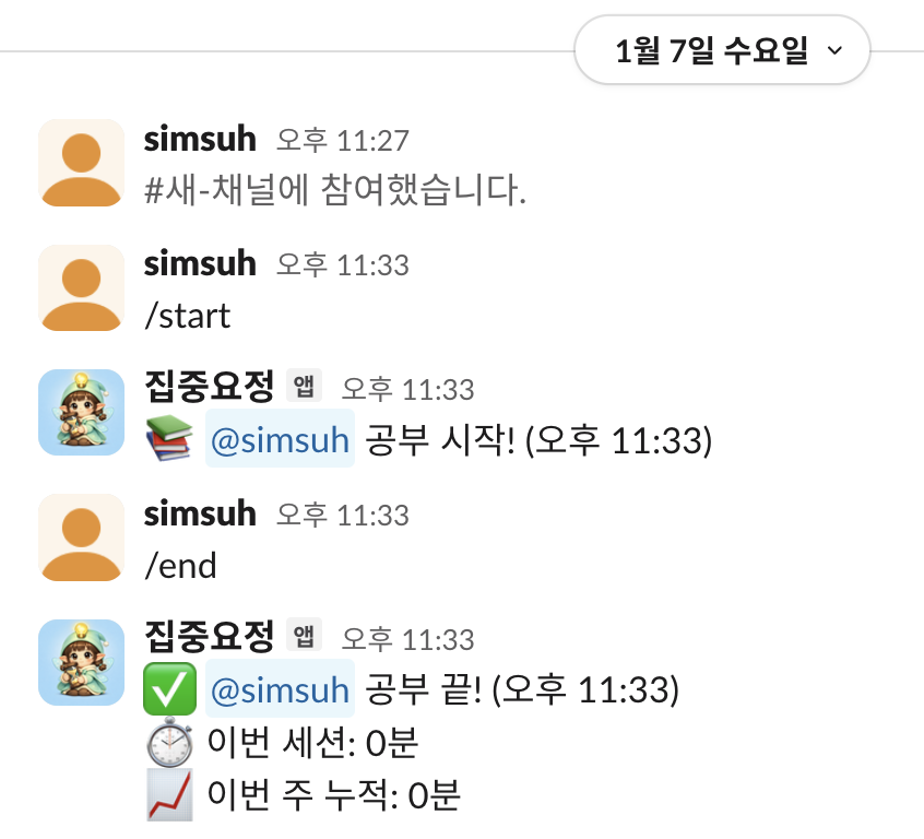 집중요정이 스터디 채널에서도 잘 작동했다.