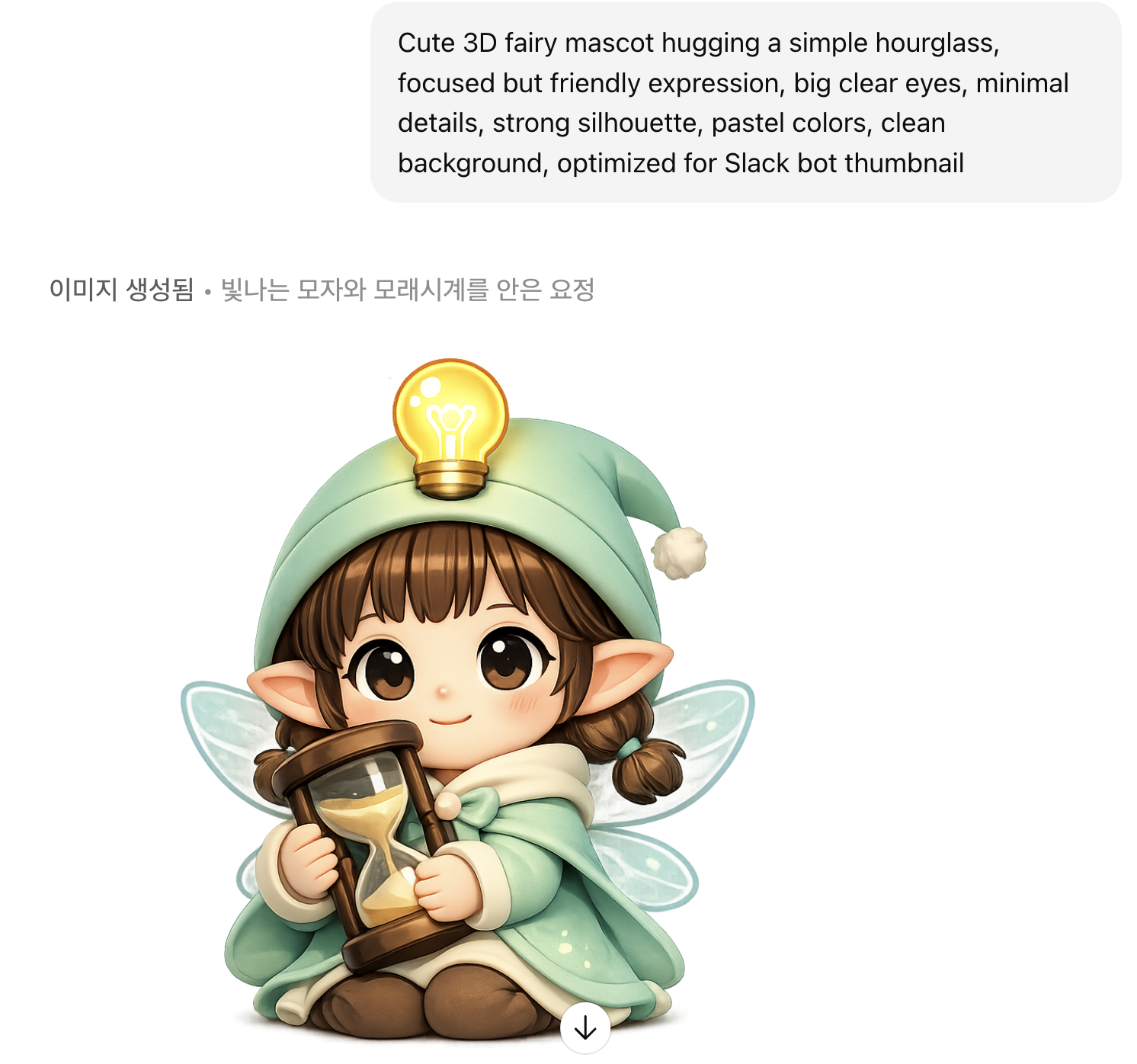 모래시계를 끌어안고 있는 귀여운 요정의 모습을 제시해달라고 했다.