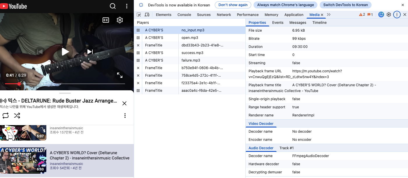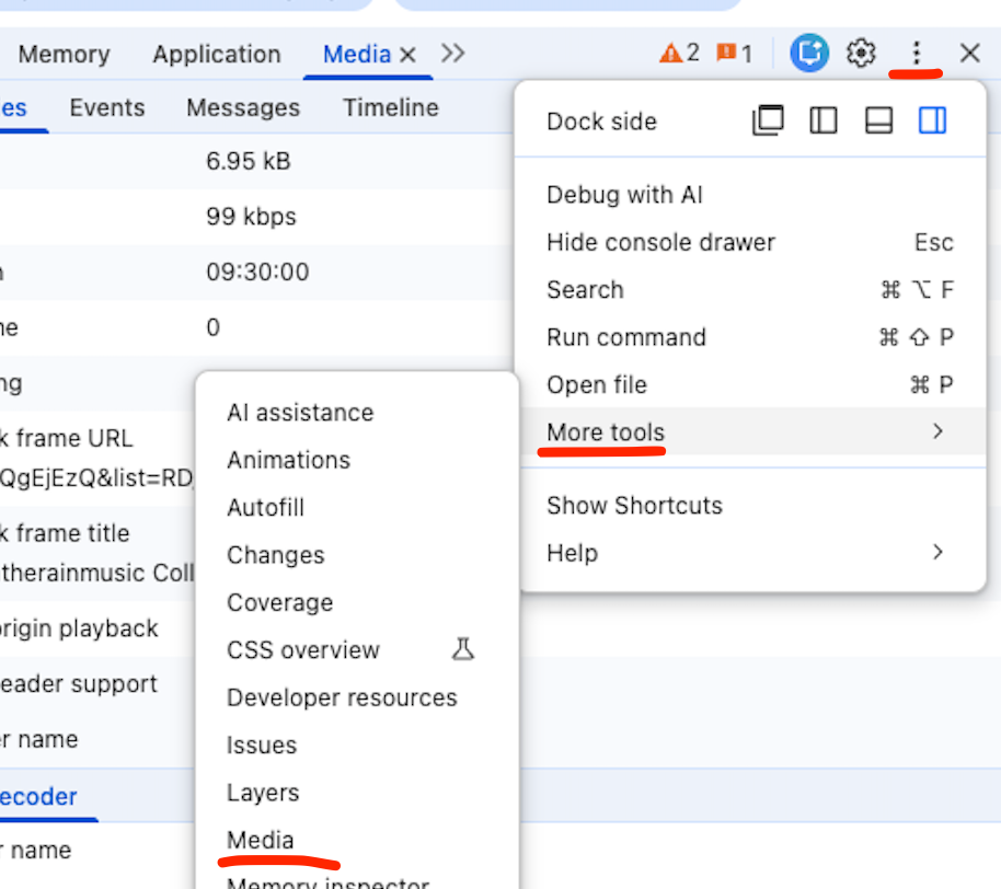 Chrome DevTools의 Media 패널로 영상의 로딩 상태, 버퍼링, 코덱 정보, 에러 등을 확인할 수 있다