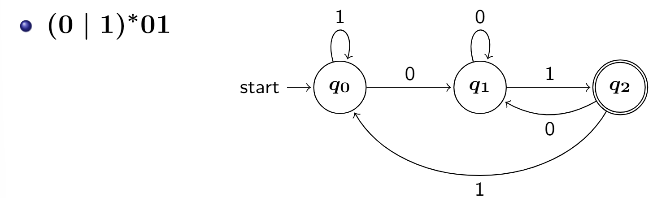 - 각 state에서 input symbol에 대해 unique한 next state가 존재함. (단 하나의 next state)