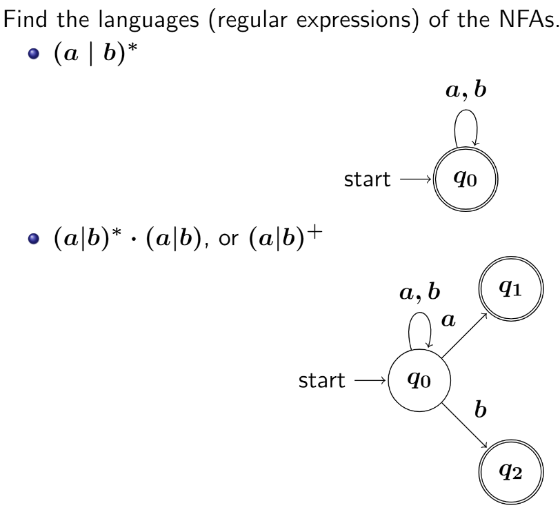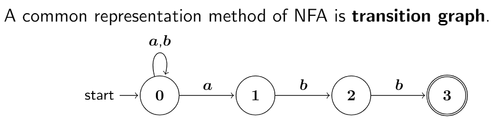 - 예시에서 보이는 NFA는 abb로 끝나는 모든 string을 인식할 수 있다.