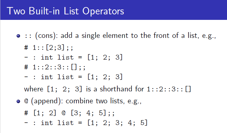 - 리스트 연산자 @는 'a list인 리스트에 대해 사용됨.