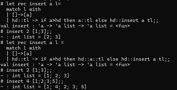 insert 4 [1] -> 1::insert 4 [] -> 1::[4] -> [1;4]
