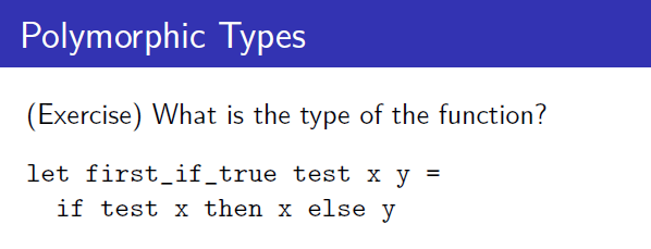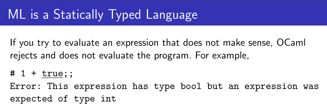 - 자동 타입 추론: OCaml은 타입을 명시하지 않아도 자동으로 타입 추천해줌(Scala, Haskell도 ㄱㄴ)