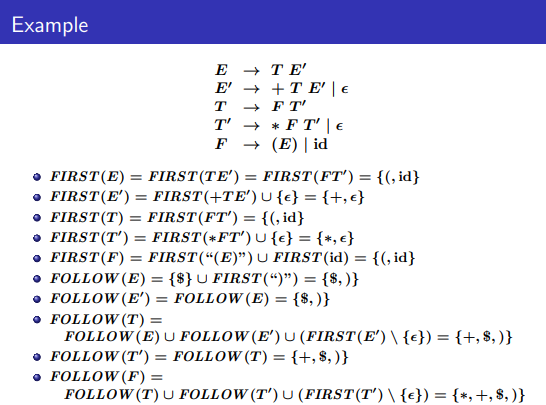 - FOLLOW(X)←(FIRST(β)∖{ϵ})∪FOLLOW(X)
