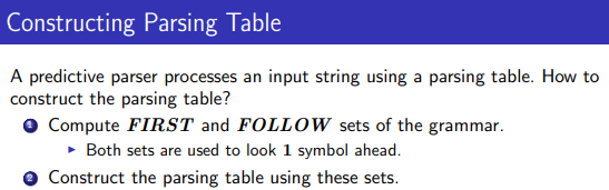 4.3. FIRST and FOLLOW -> constructing parsing table