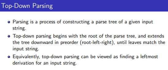 - root-left-right 순서로 top-down parsing을 진행해 parse tree를 그린다