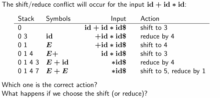 - shift랑 reduce가 겹치면 보통 shift 선택함.