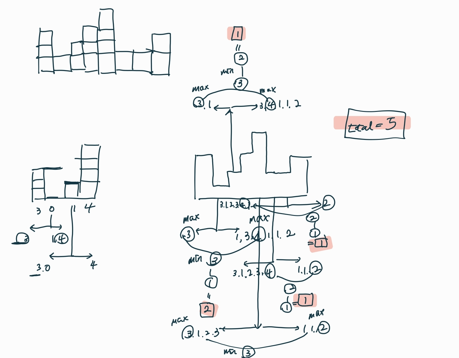 그리고, 그 좌,우 min 값 중 나 자신의 높이를 빼면 내 위치에서 고이는 빗물의 높이를 알 수 있음