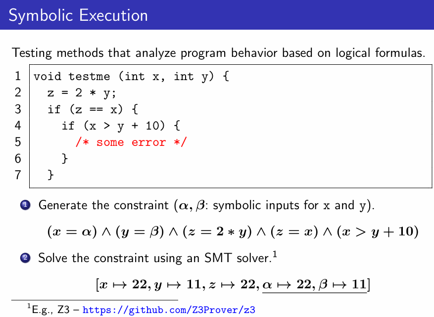 - SMT 솔버로 논리적 제약 조건을 만족하는 값을 찾음