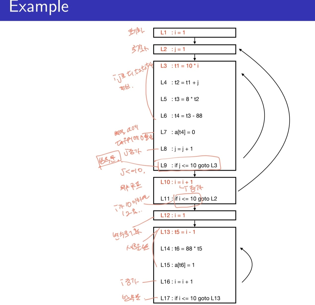 - L1: i=1. 프로그램의 첫 번째 명령어는 항상 Leader. i=1은 독립적인 basic block 형성