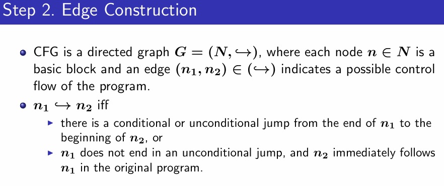 - edge 조건2: n1이 무조건 jump로 끝나지 않고, n2가 프로그램 내에서 n1 바로 다음에 위치할 때